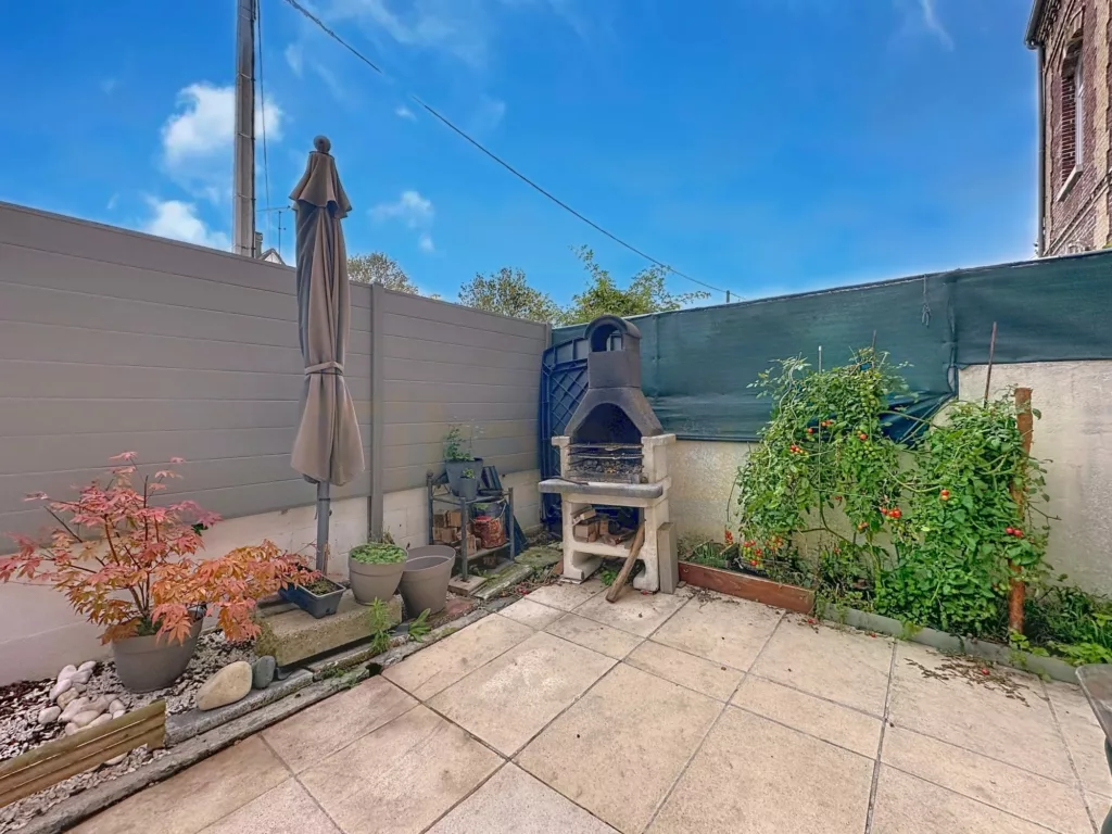 🌿 Terrasse à l’avant avec barbecue en pierre et clôture récente
